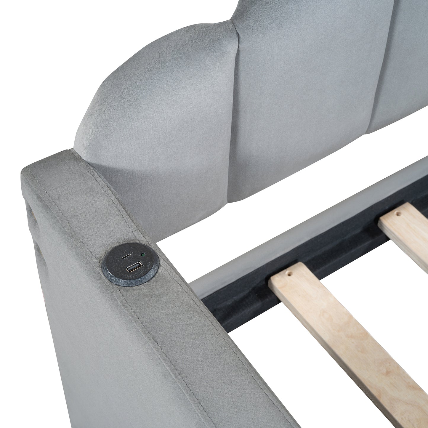 - [Daybed Frame with Charging Station] This unique twin size daybed frame designed with a 2 USB Ports charging station on right armrest, when you are lying on the sofa bed and your phone is out of power, you can charge your phone in time.