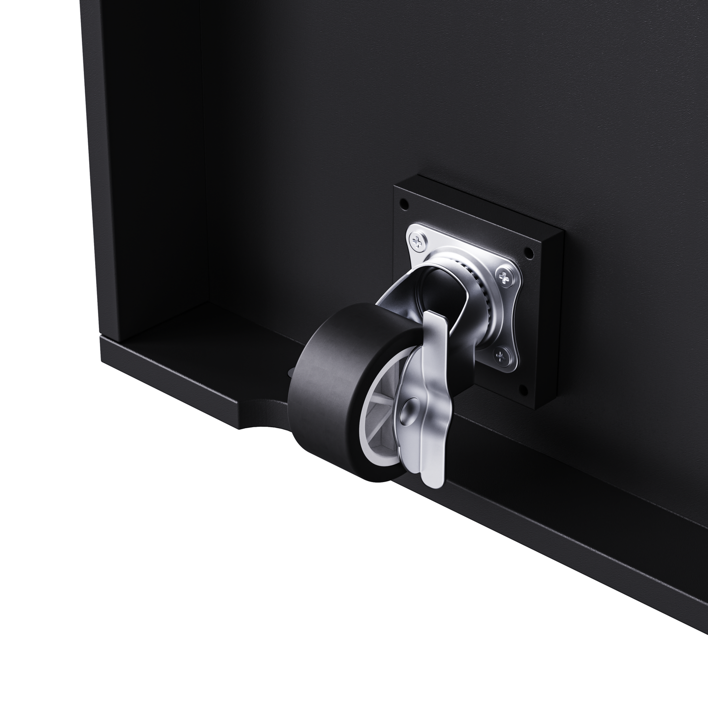 You can choose to use wheels or not apply wheels as a stationary side cabinet or island.