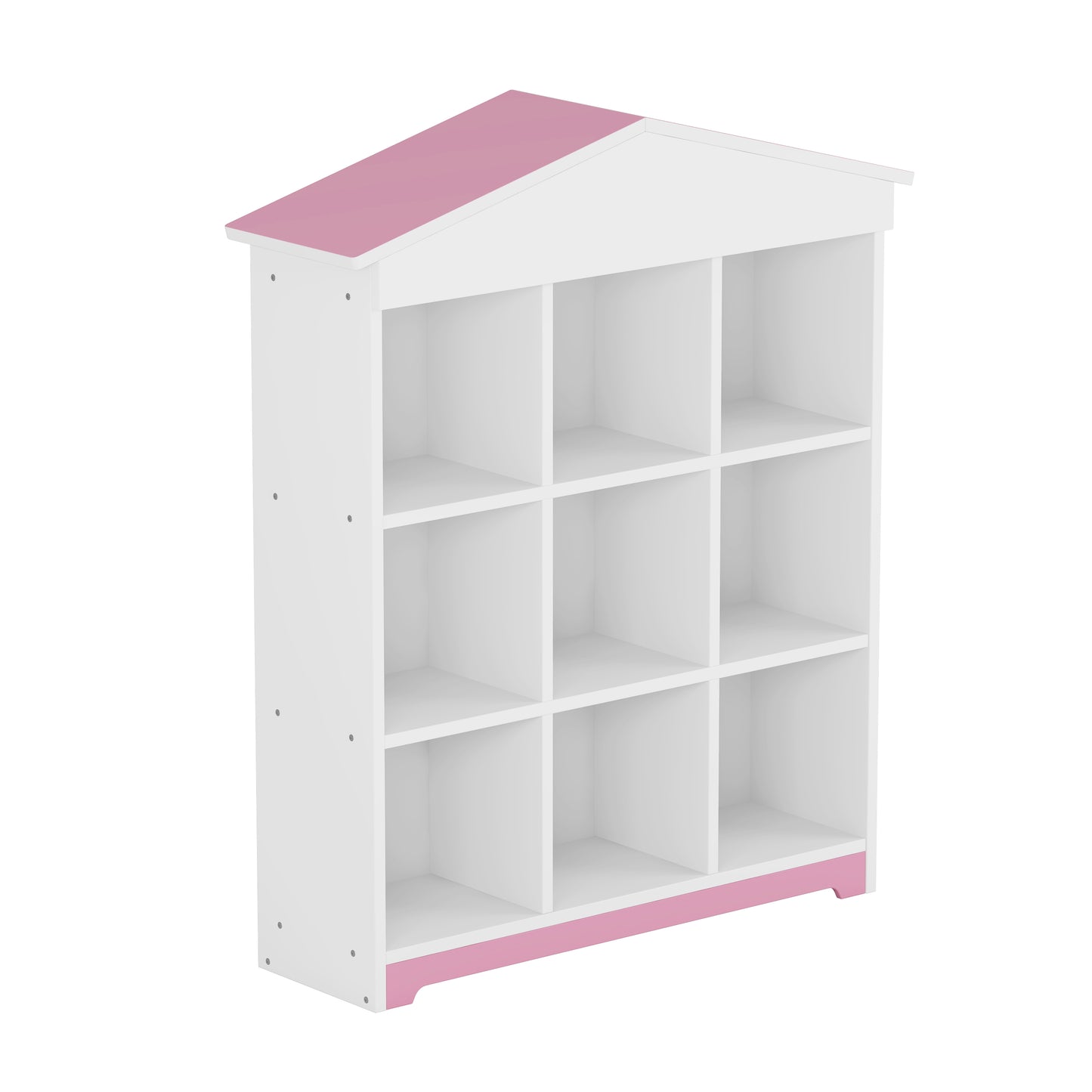 House-shaped Storage Rack with Nine Storage Compartments, Three-layer Storage Shelf with Colorblock Design, White+Pink