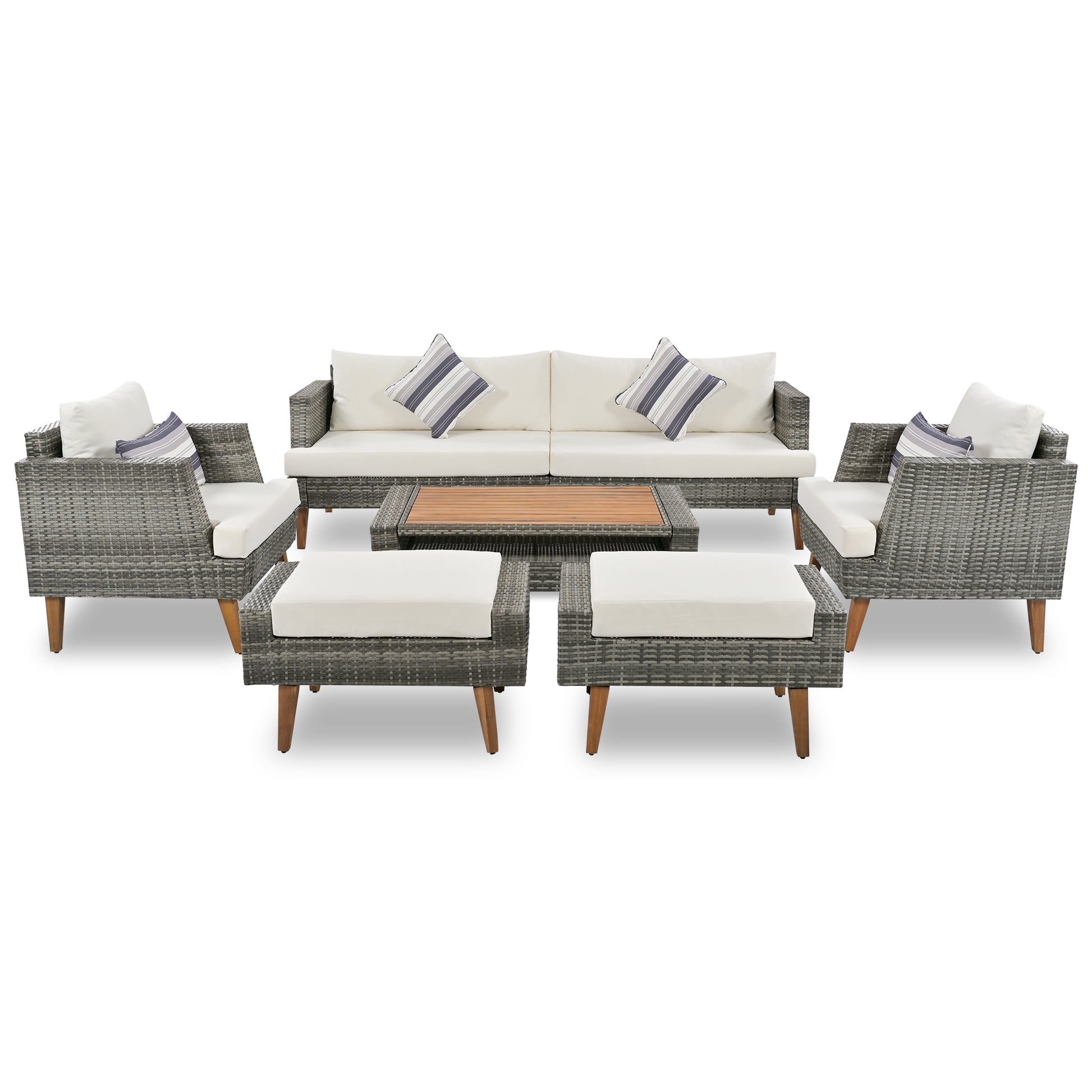 GO 6-Pieces All Weather PE Wicker Sofa Set with Double Cushions, Wood Legs, Beige and Gray
