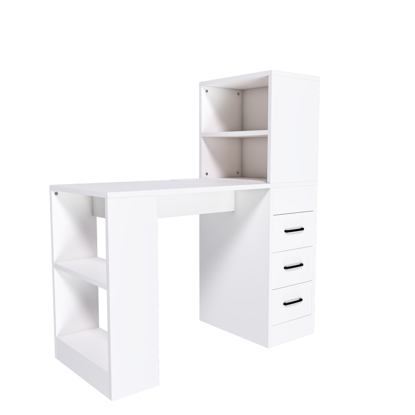 White Computer Desk with 4-in-1 Socket, the Desk with 3 Slide Drawers and 4 Storage Levels, the Wooden Desk is Suitable for a Variety of Places