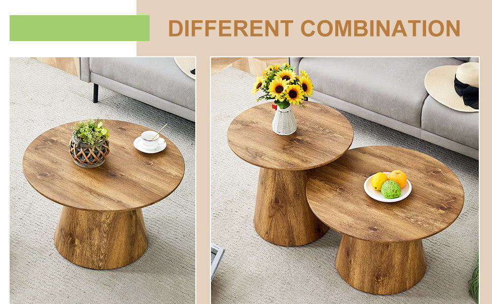 Natural Wood Grain MDF Round Coffee Table - 25.6' Diameter, 15.7' Height.Natural Wood Grain Texture Sticker,Exquisite Wood Grain Surface,Flexible MatchingMRound Tabletop Design.