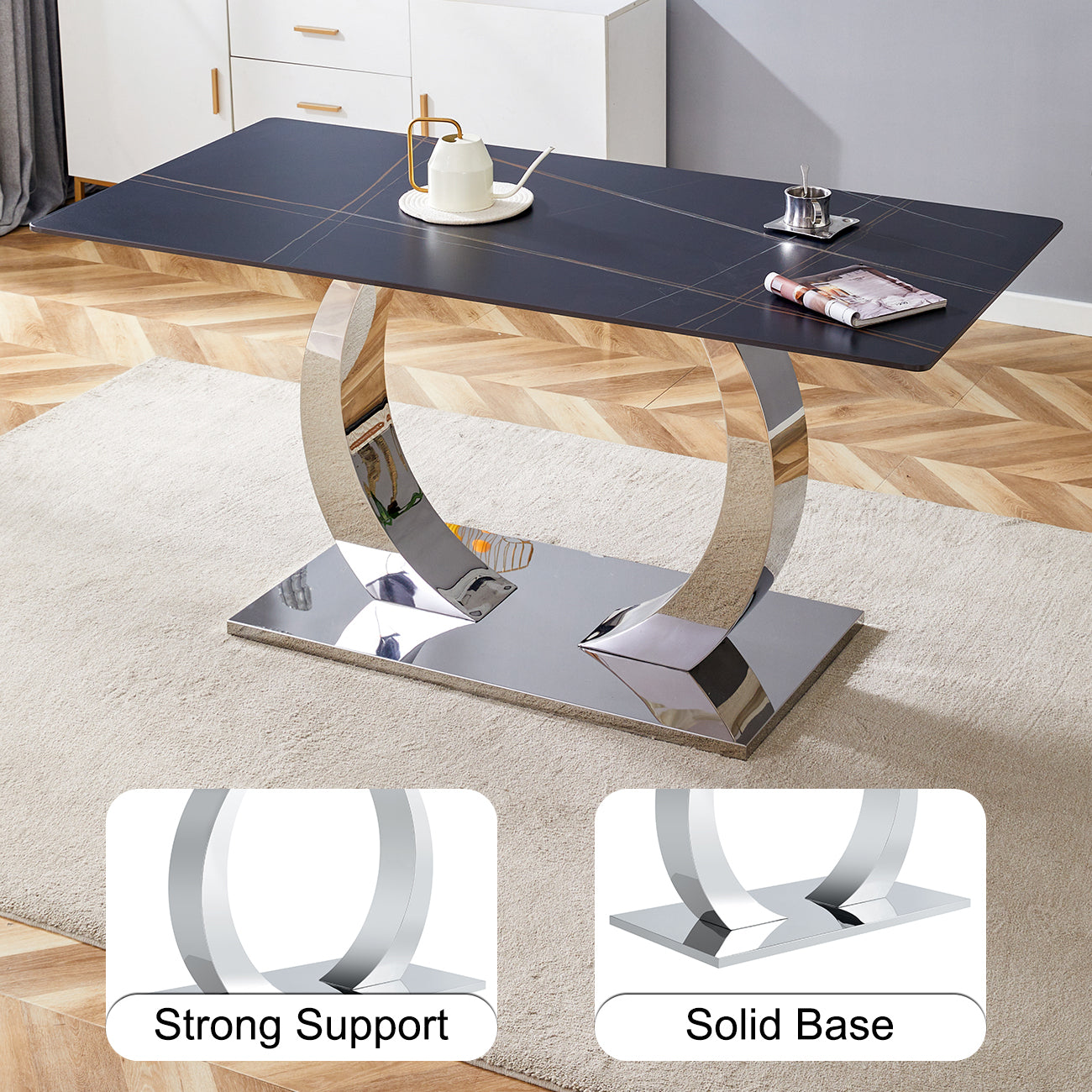 - Stainless Steel O-Shaped Legs: The unique design offers solid support, and the stainless steel material ensures the durability and stability of the table legs.