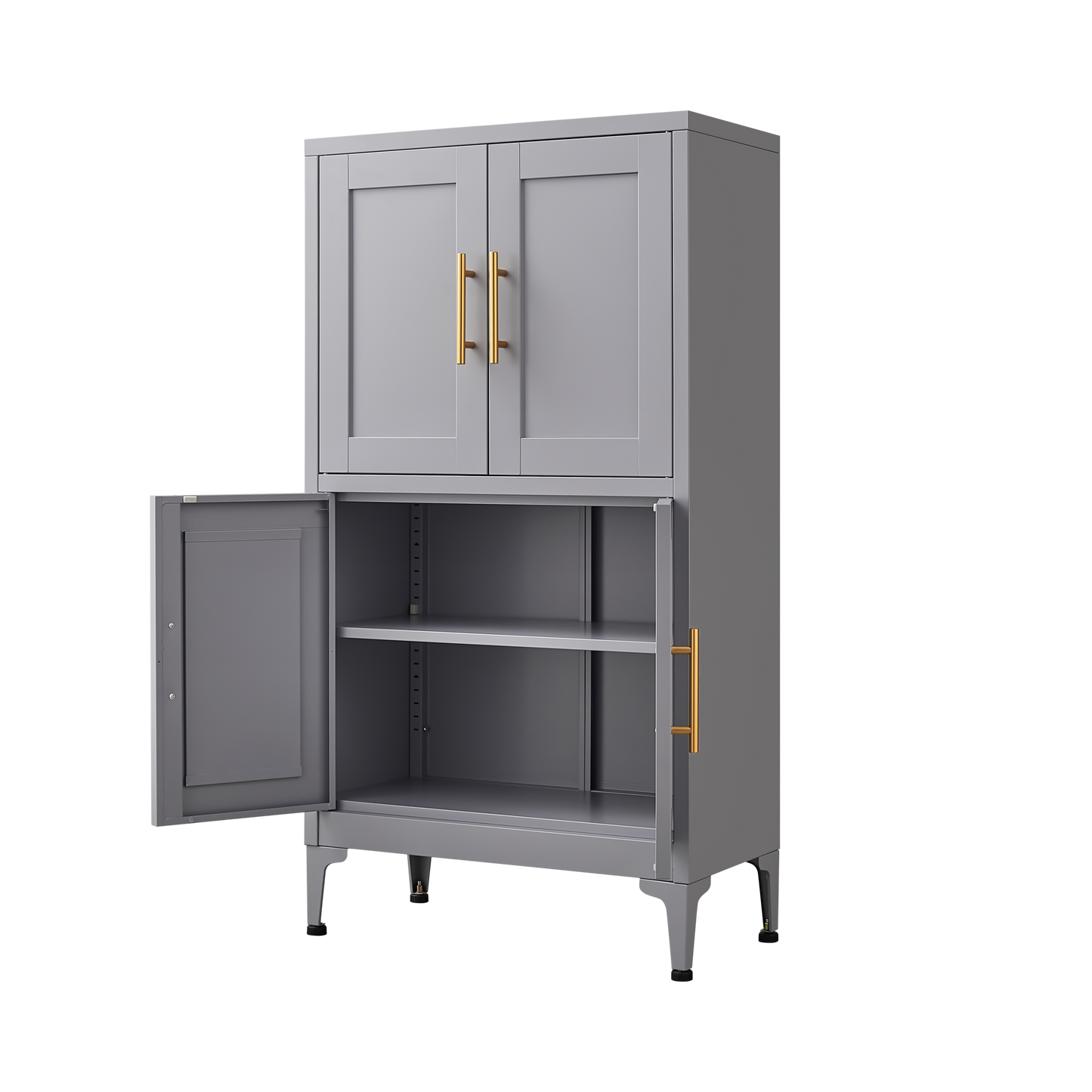 Grey Metal Kitchen Storage Cabinet, Kitchen Pantry Storage Cabinet with Doors and Shelves, Storage Cabinet with Adjustable Leveling Foot for Kitchen, Living Room and Dining Room