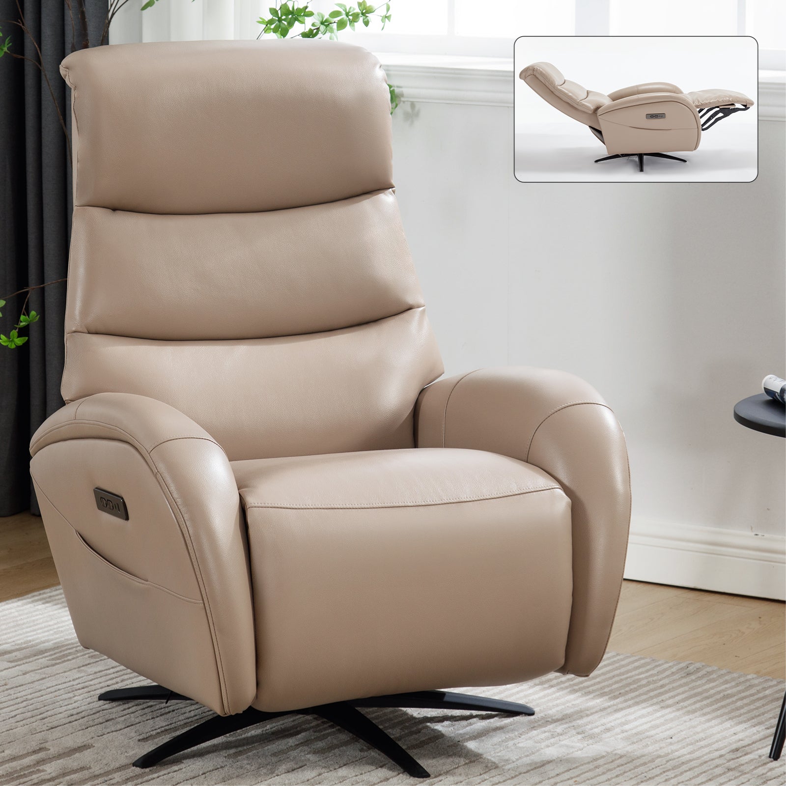 Khaki Leatheraire Dual Motor 270° Swivel Power Recliner Chair With Heavy Duty Motion Mechanism, USB and Type-C Charging Ports