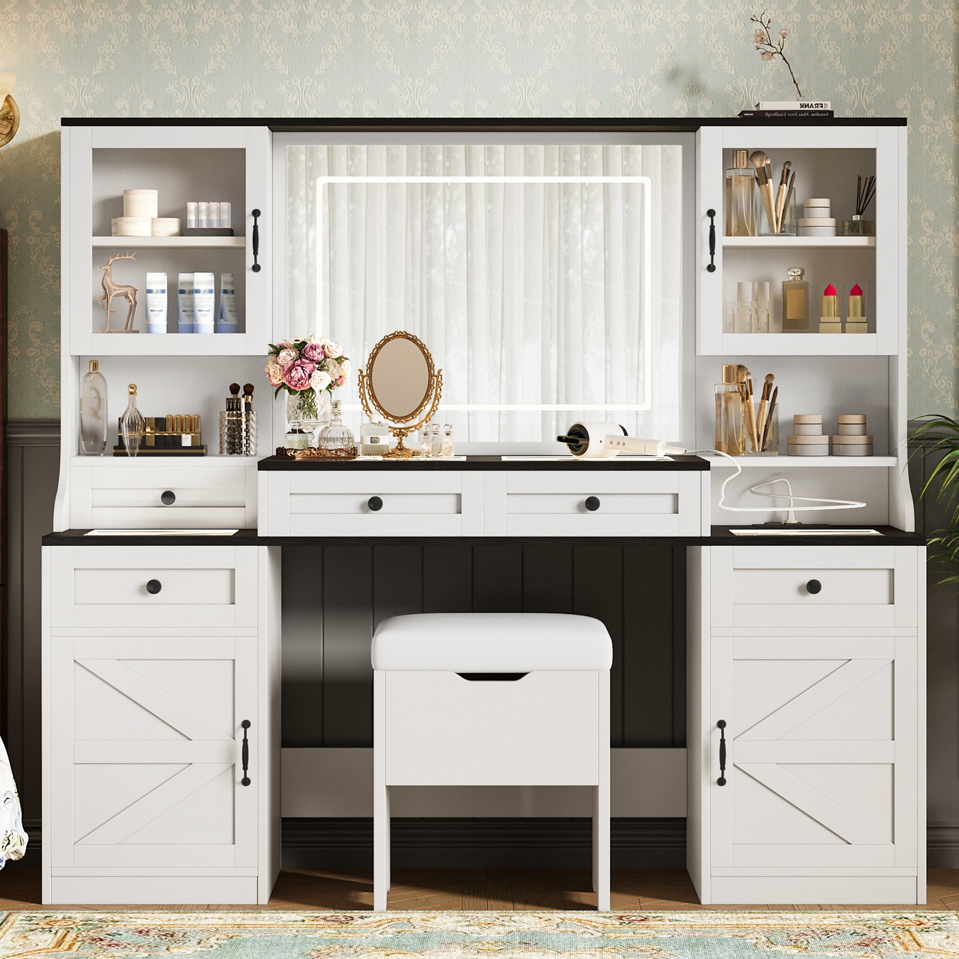 - Farmhouse Chic Design: Crafted from MDF, this dressing table exudes a classic silhouette and sophisticated farmhouse style that exudes endless charm. Designed for practicality, this dressing table also features a lighted mirror, drawers and cabinets for all your makeup and storage needs.