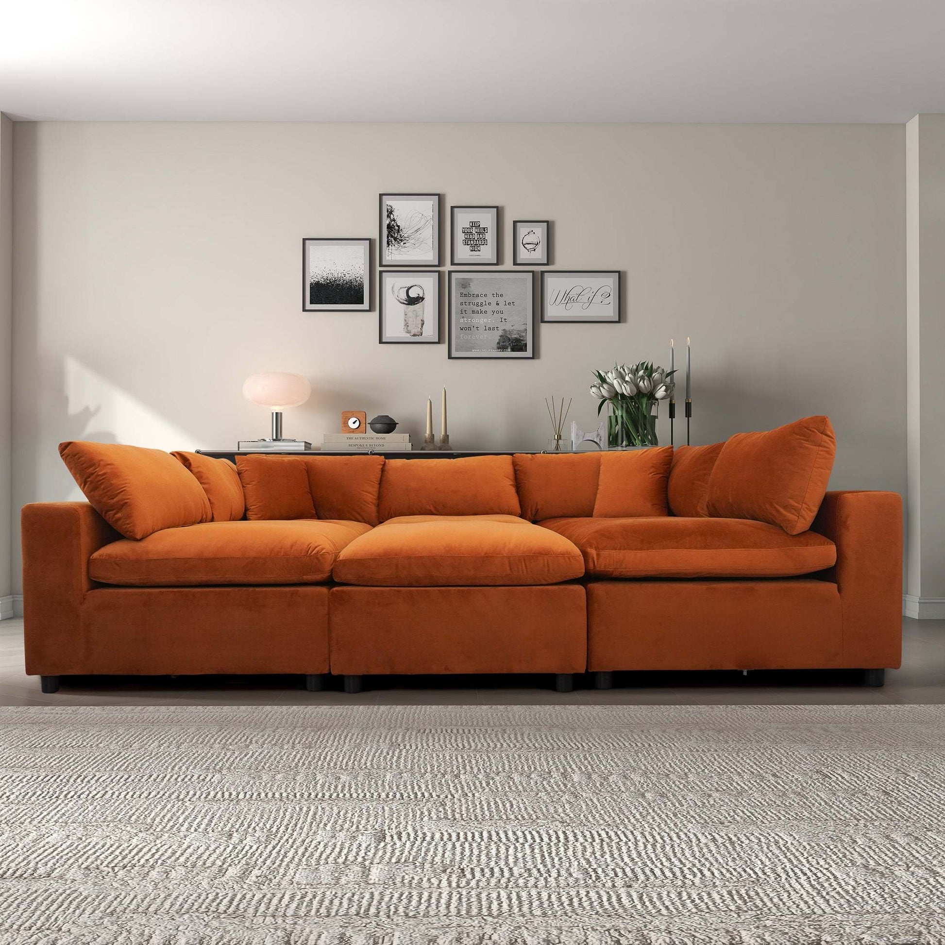 Hayward Burnt Orange Velvet Modular Sectional Sofa