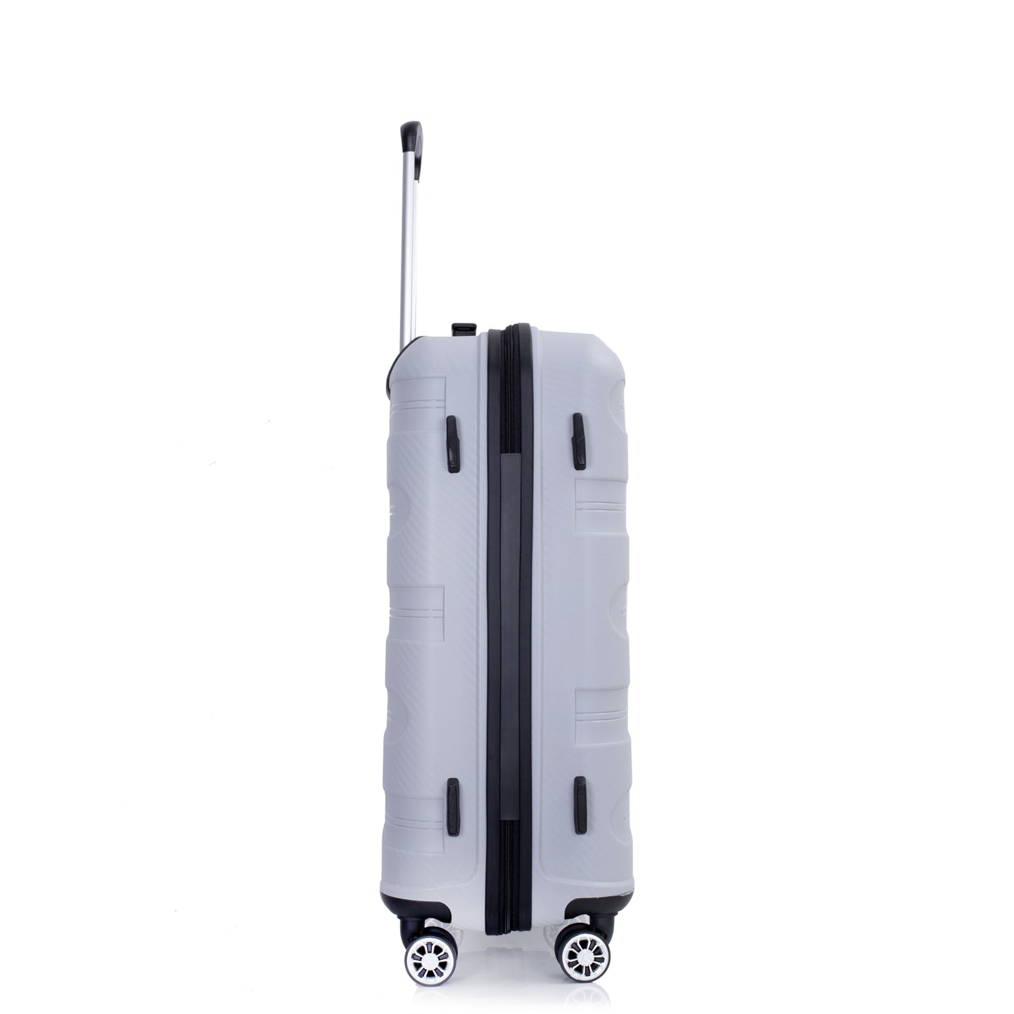 Hardshell Suitcase Spinner Wheels PP Luggage Sets Lightweight Durable Suitcase with TSA Lock,3-Piece Set (20/24/28) ,Silver