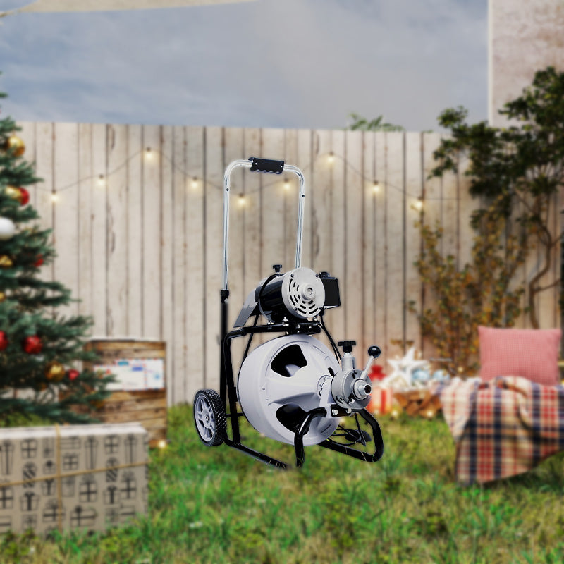 - [Easy to Carry, Peace of Mind] Drain cleaner employs a semi-open drum design,allowing you to directly observe the status of the cable while securely holding the cable within the drum,cleverly minimizing the risk of accidental cable release.The machine's 8-inch large portable wheels tackle any work location with ease.Compared to handheld drain cleaners of similar weight class,our product stands out in terms of practicality and safety.