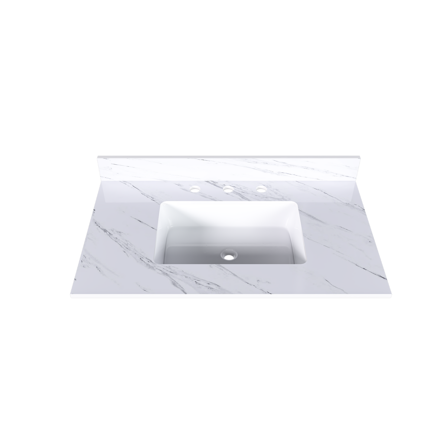 - Package Includes: vanity top with assembled rectangular ceramic sinks, 4' high backsplash. Besides, an extremely solid package - Reinforced packaging making sure a safe delivery. (Attention: Cabinet and faucet NOT INCLUDED).
