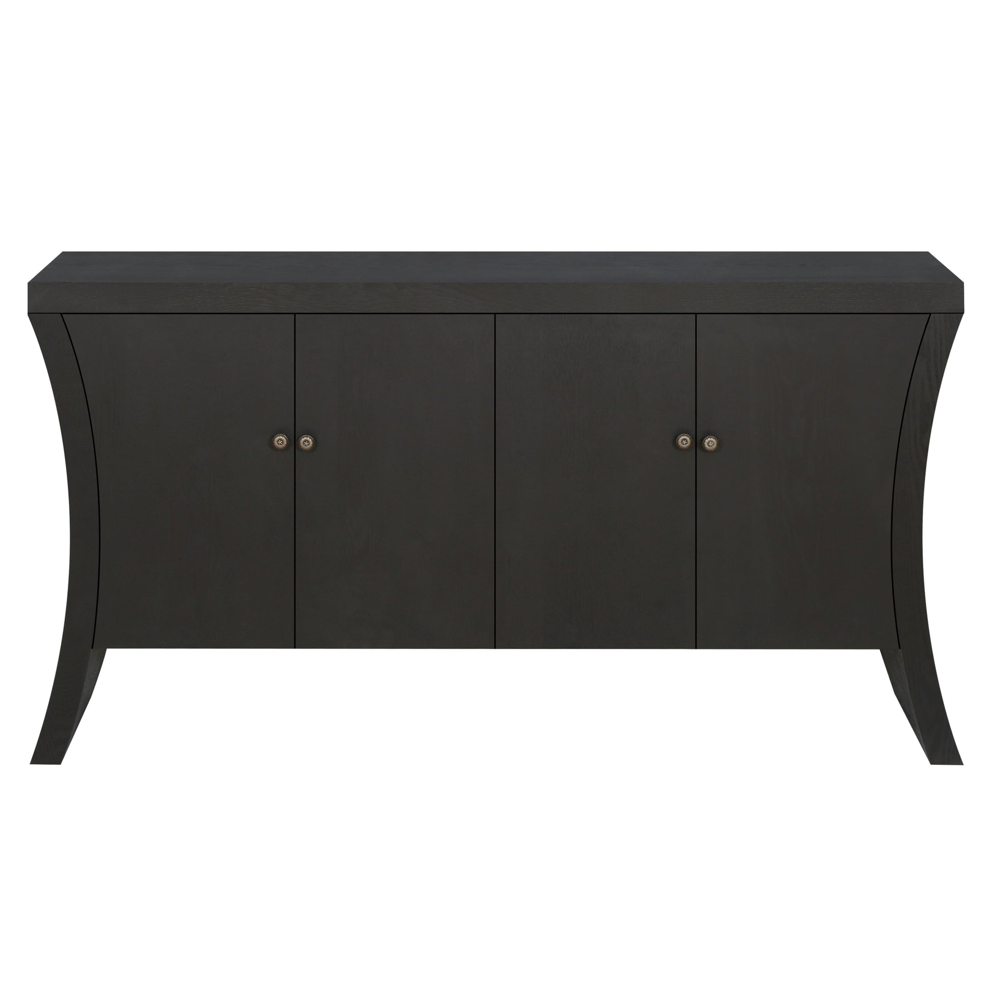 Refined Industrial 4-Door Credenza with Wooden Arc Legs & Bronze Clasps – Advanced Storage Design, Black MDF