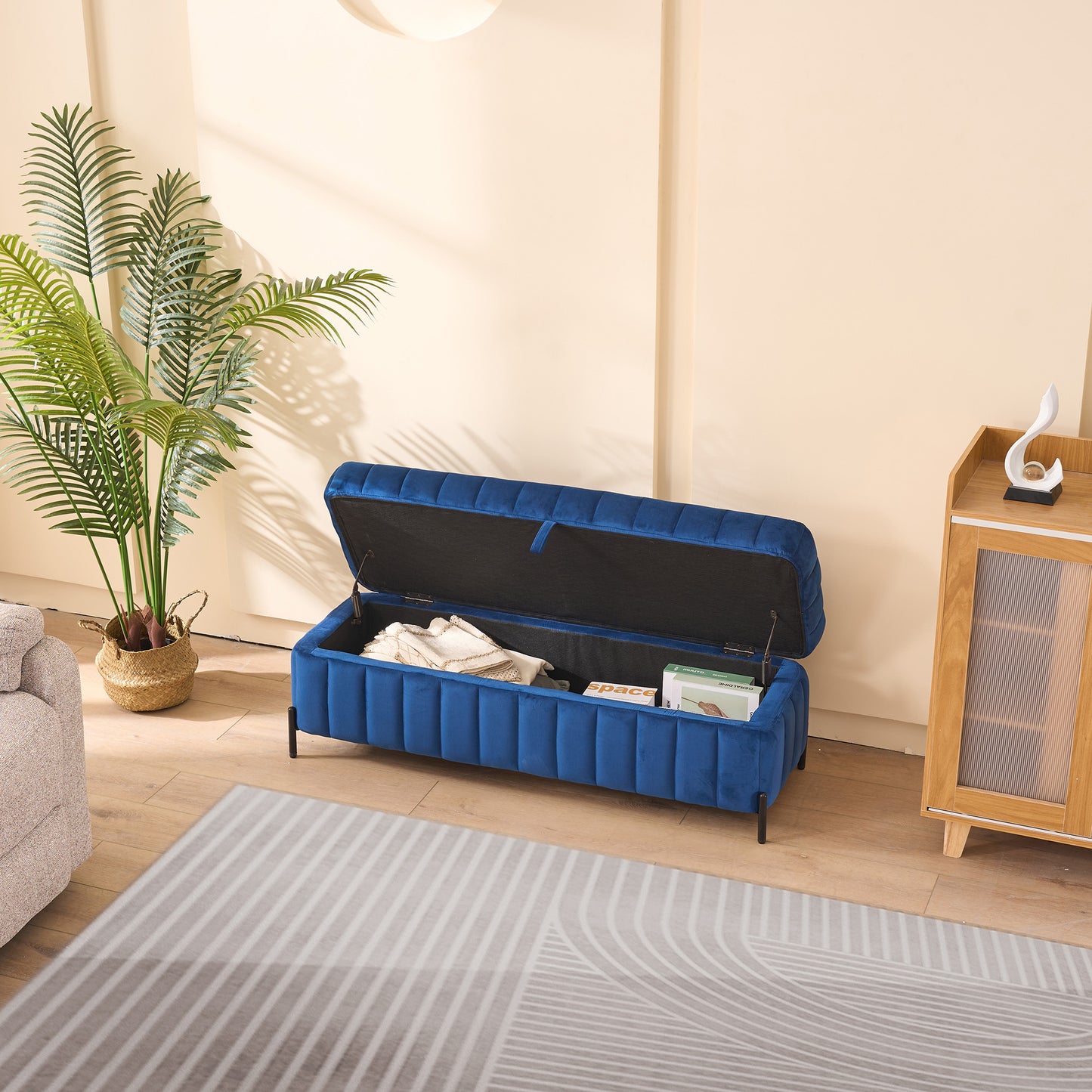 49.21'Wide Velvet Storage Soft Bench for Living Room, Entryway and Bedroom. Navy