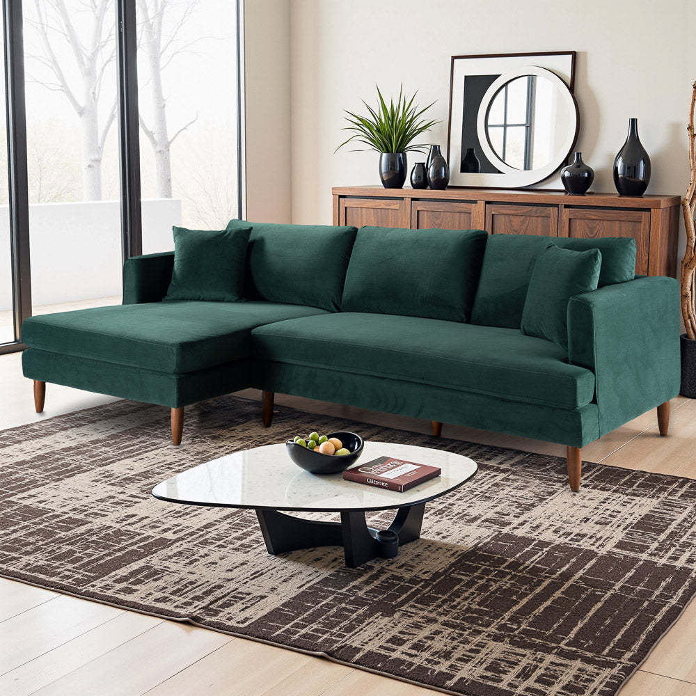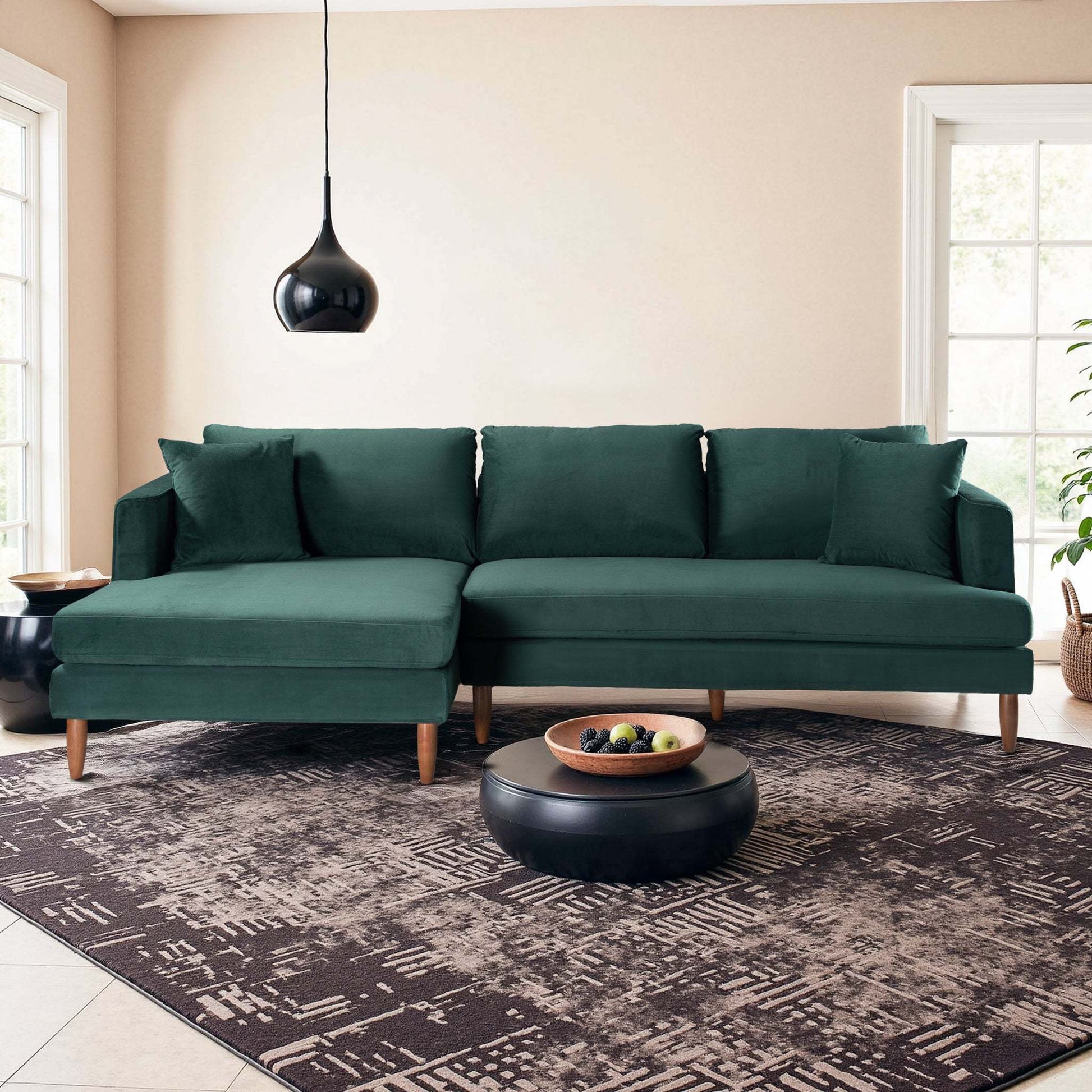 Blake L-Shaped Dark Green Velvet Sectional Sofa Left Facing