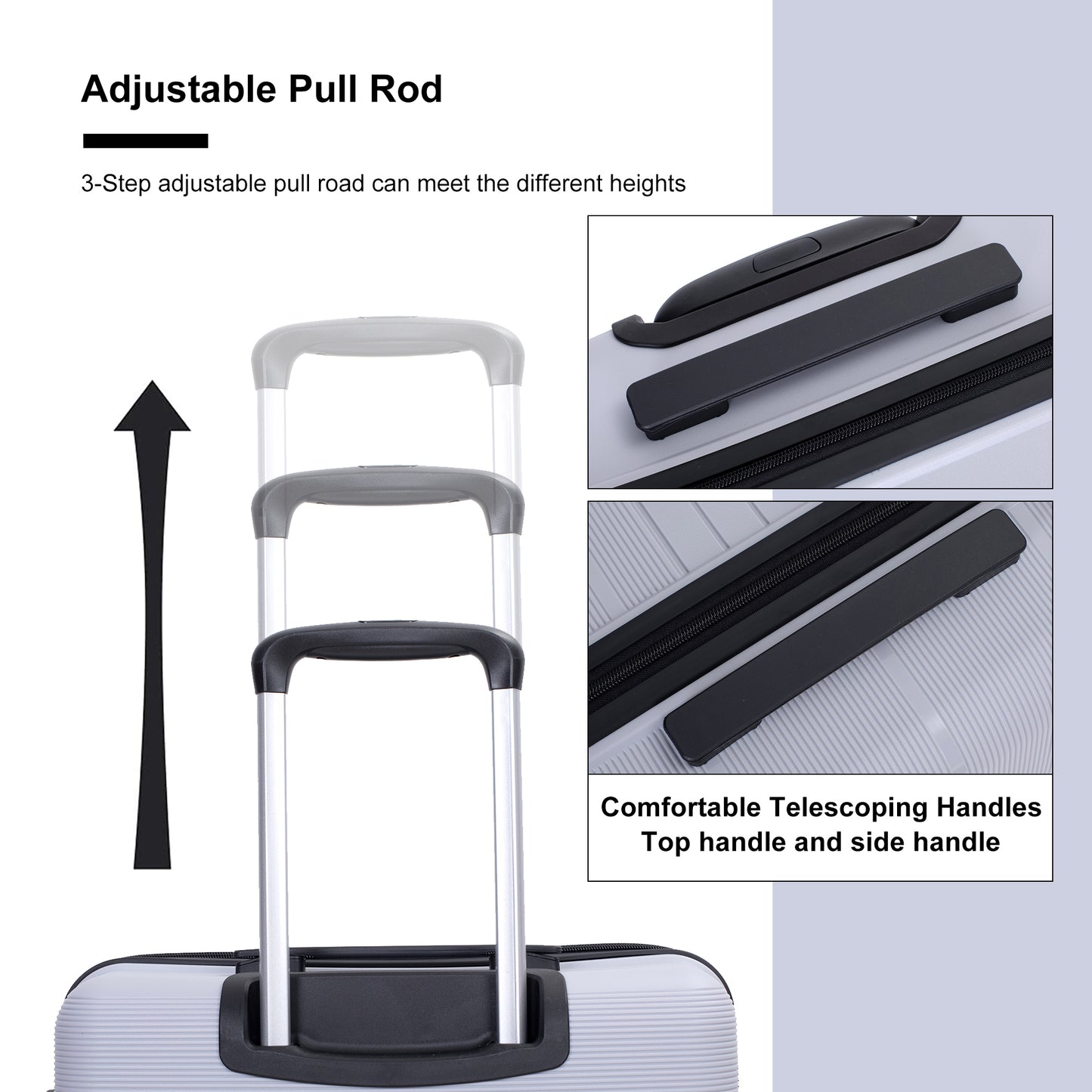 Hardshell Suitcase Double Spinner Wheels PP Luggage Sets Lightweight Durable Suitcase with TSA Lock,3-Piece Set (20/24/28) , Silver