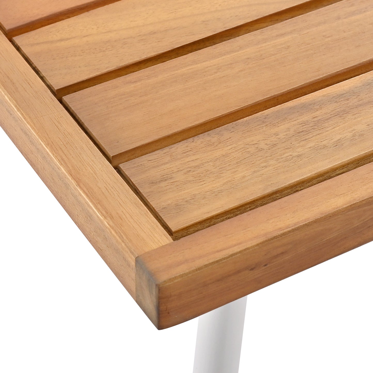 The coffee table in our patio furniture set is Made with acacia wood that brings a sleek and exotic look to your space, this durable hardwood naturally withstands outdoor elements and will not darken over time. Acacia wood is perfect as a solid, heavy frame that resists wear and tear.
