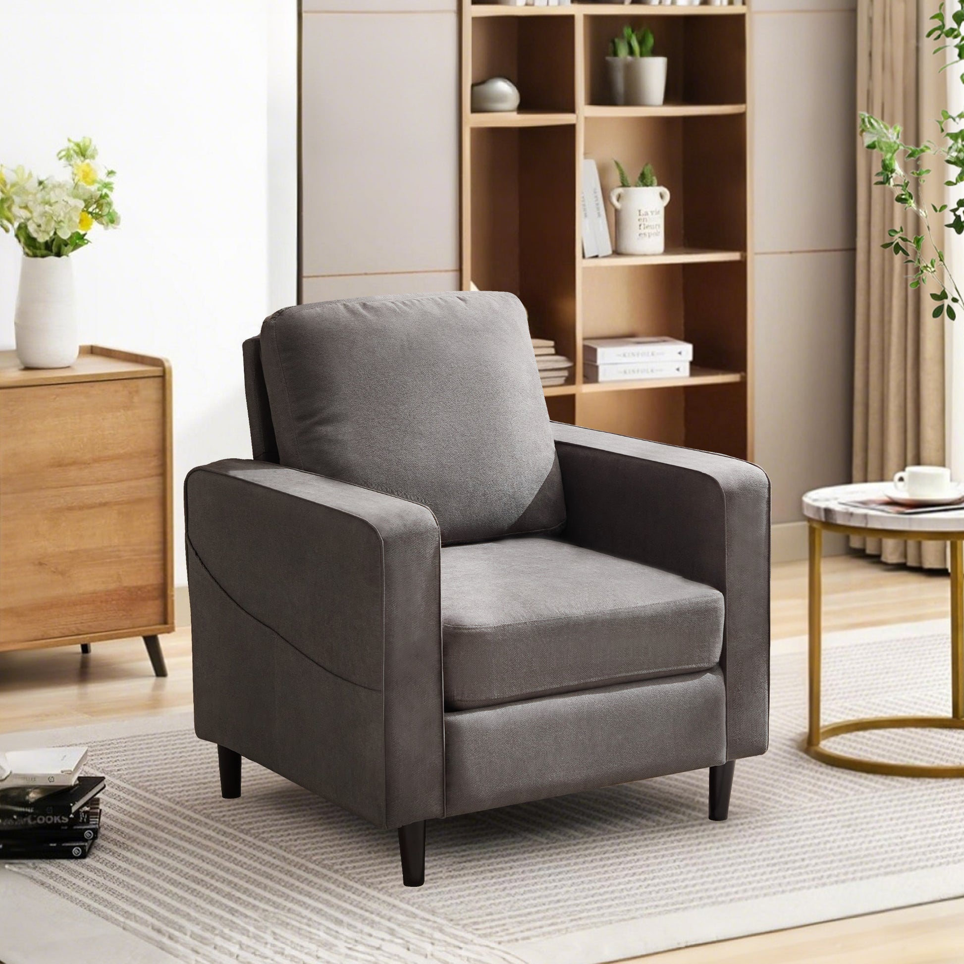 Mid-Century Accent Chair ,Modern Linen Fabric Armchair for Living Room,Double side pockets,, comfortable and padded reading feature sofa chair, suitable for bedrooms, living rooms, and offices(1 piece