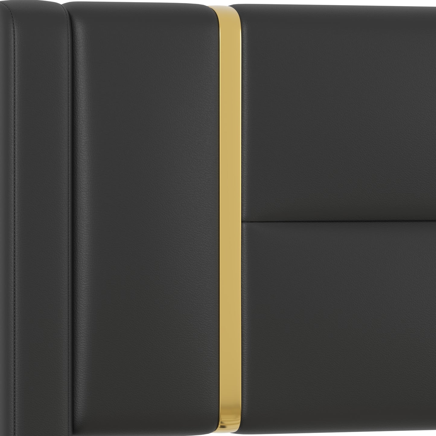- Stylish Modern Design: This upholstered bed features a sleek and modern platform design, enhanced with elegant gold decoration to add a touch of sophistication to your bedroom.