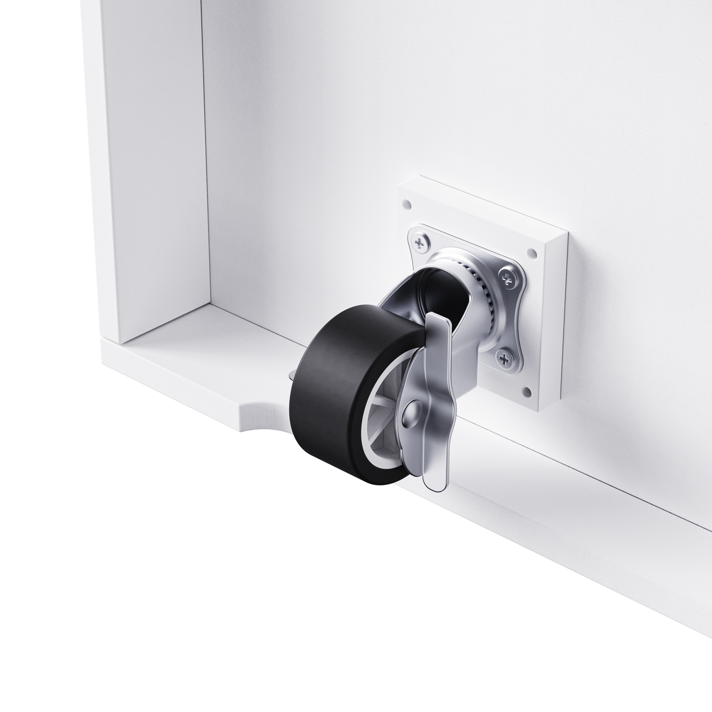 You can choose to use wheels or not apply wheels as a stationary side cabinet or island.