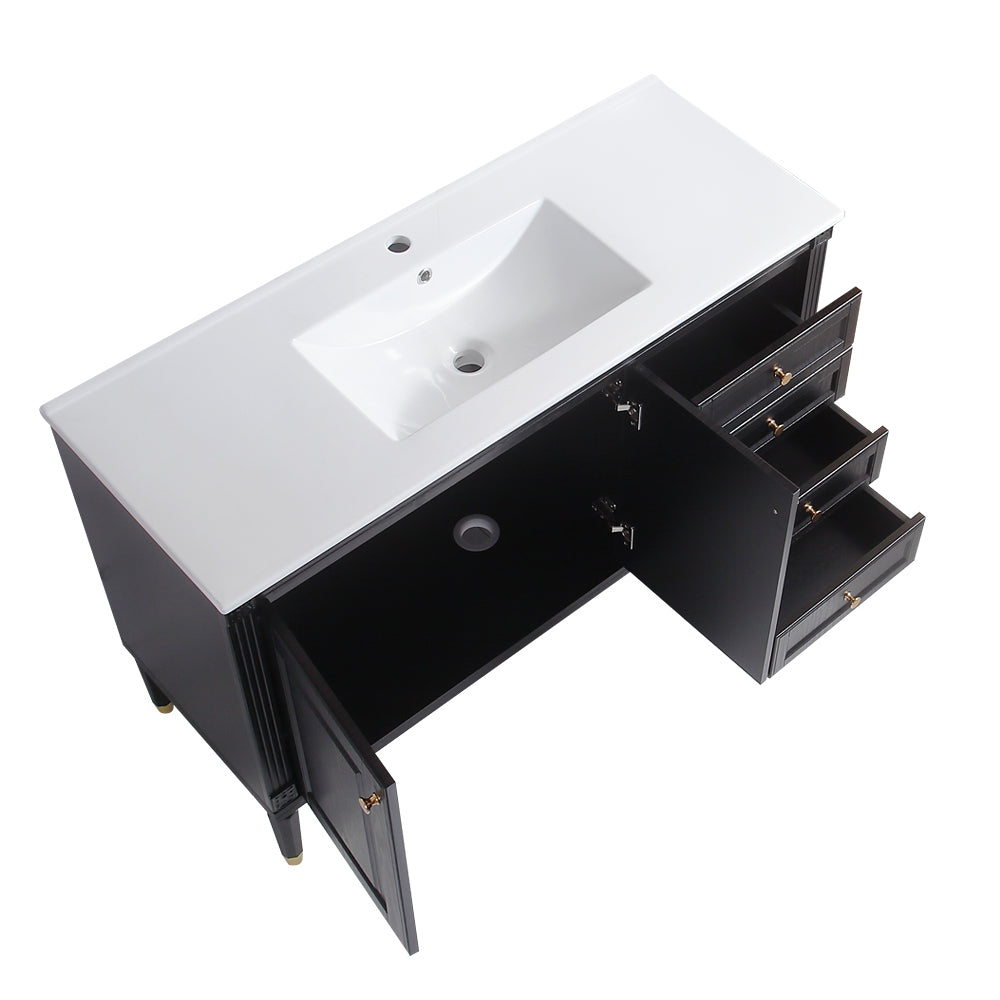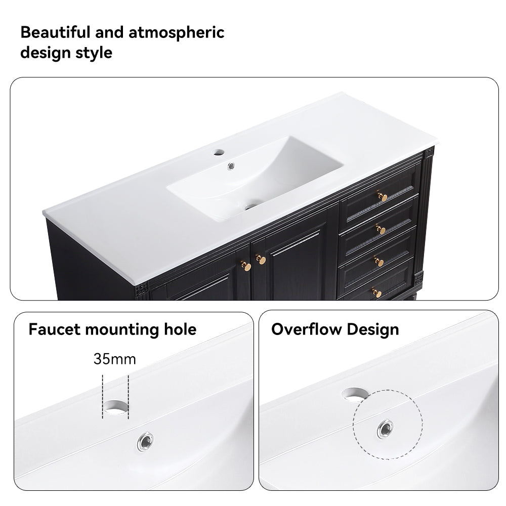 48'' Bathroom Vanity with Top Sink, Bathroom Storage Cabinet with 2 Soft Closing Doors and 3 Drawers, Single Sink Bathroom Vanity. black
