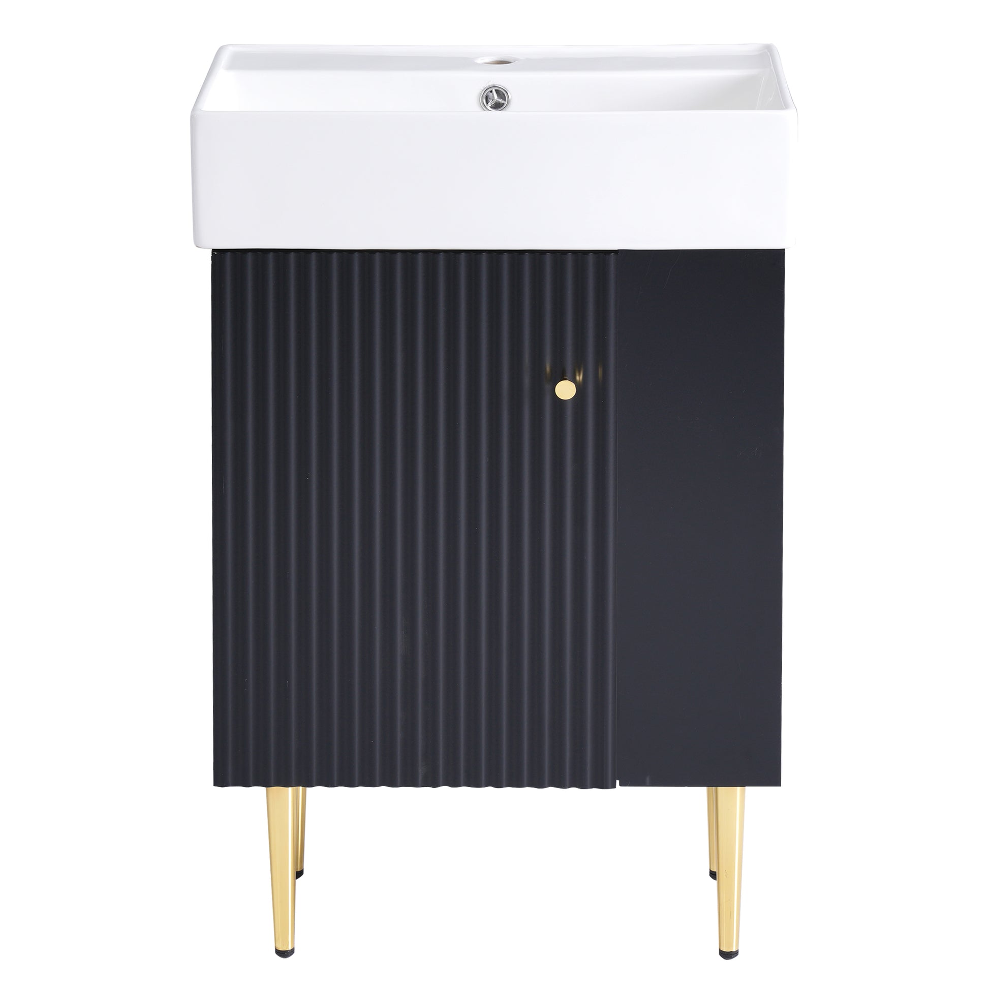 21.6' Black Modern Bathroom Vanity with Ceramic Sink, Right Side Storage, MDF Cabinet, Gold Metal Legs