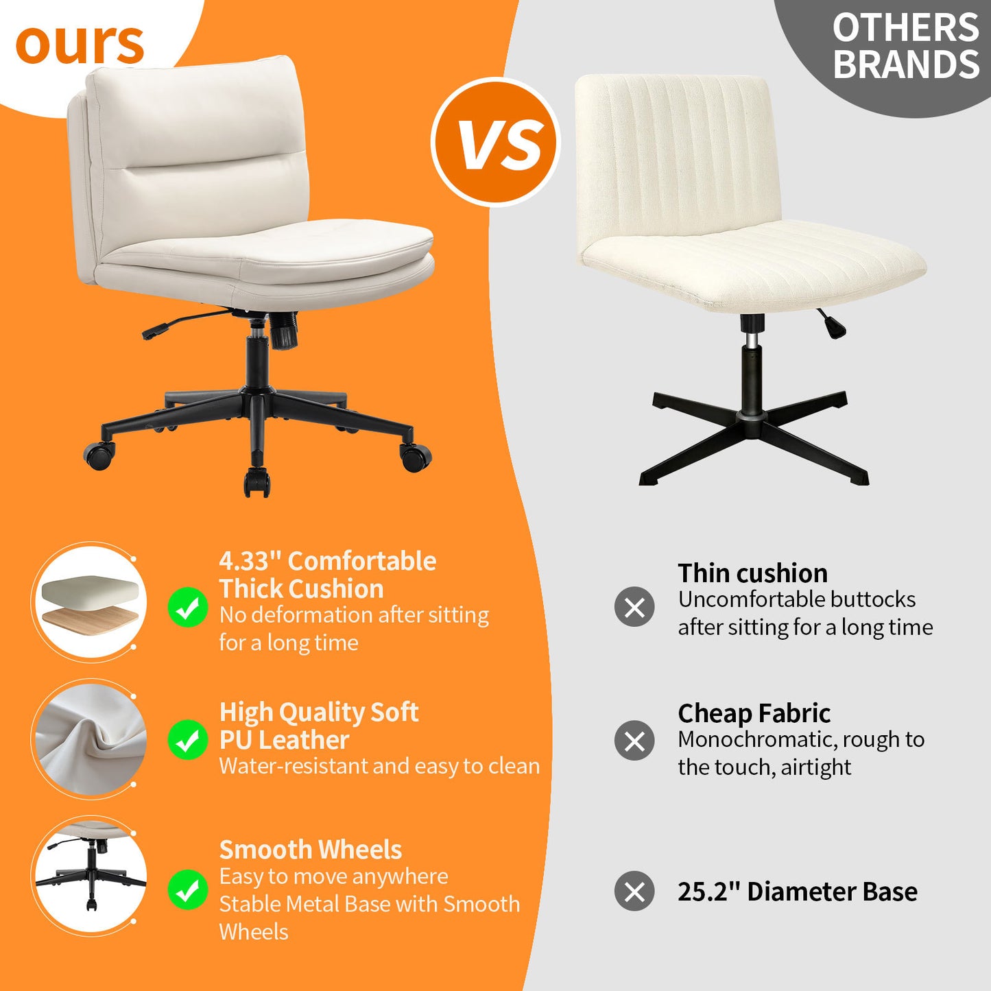Office Chair Armless Desk Chair with Wheels, PU Padded Wide Seat Home Office Chairs, 120° Rocking Mid Back Cute Computer Chair for Bedroom, Vanity, Makeup