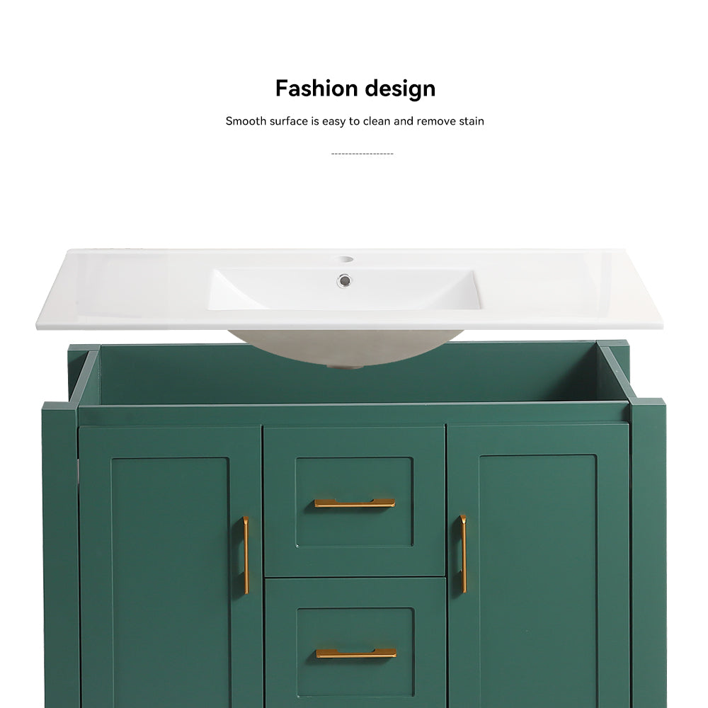 36'Green Bathroom Vanity with Single Sink, Combo Cabinet Undermount Sink, Bathroom Storage Cabinet with 2 Doors and 2 Drawer, Soft Closing, Multifunctional Storage