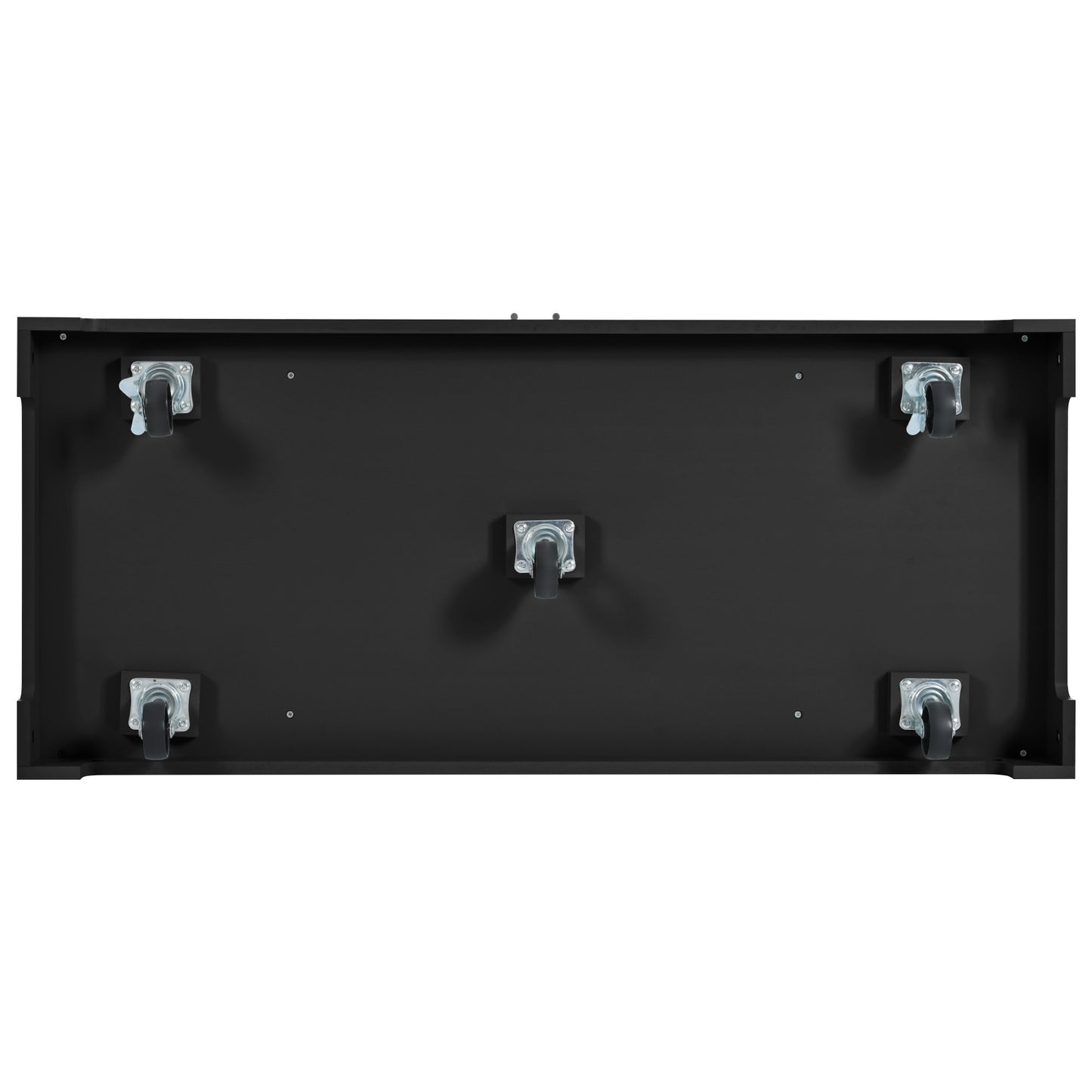This mobile kitchen island on wheels is equipped with 5 universal wheels, 2 of which are lockable. The central placement of one wheel at the base ensures enhanced overall stability during movement.