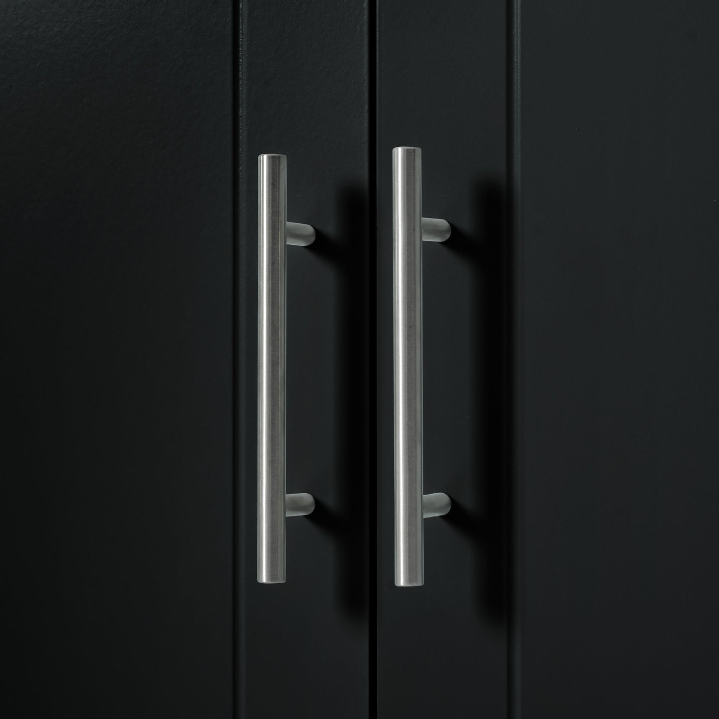 Height-adjustable shelves inside the cabinet doors provide flexibility in accommodating various kitchen items of different sizes.