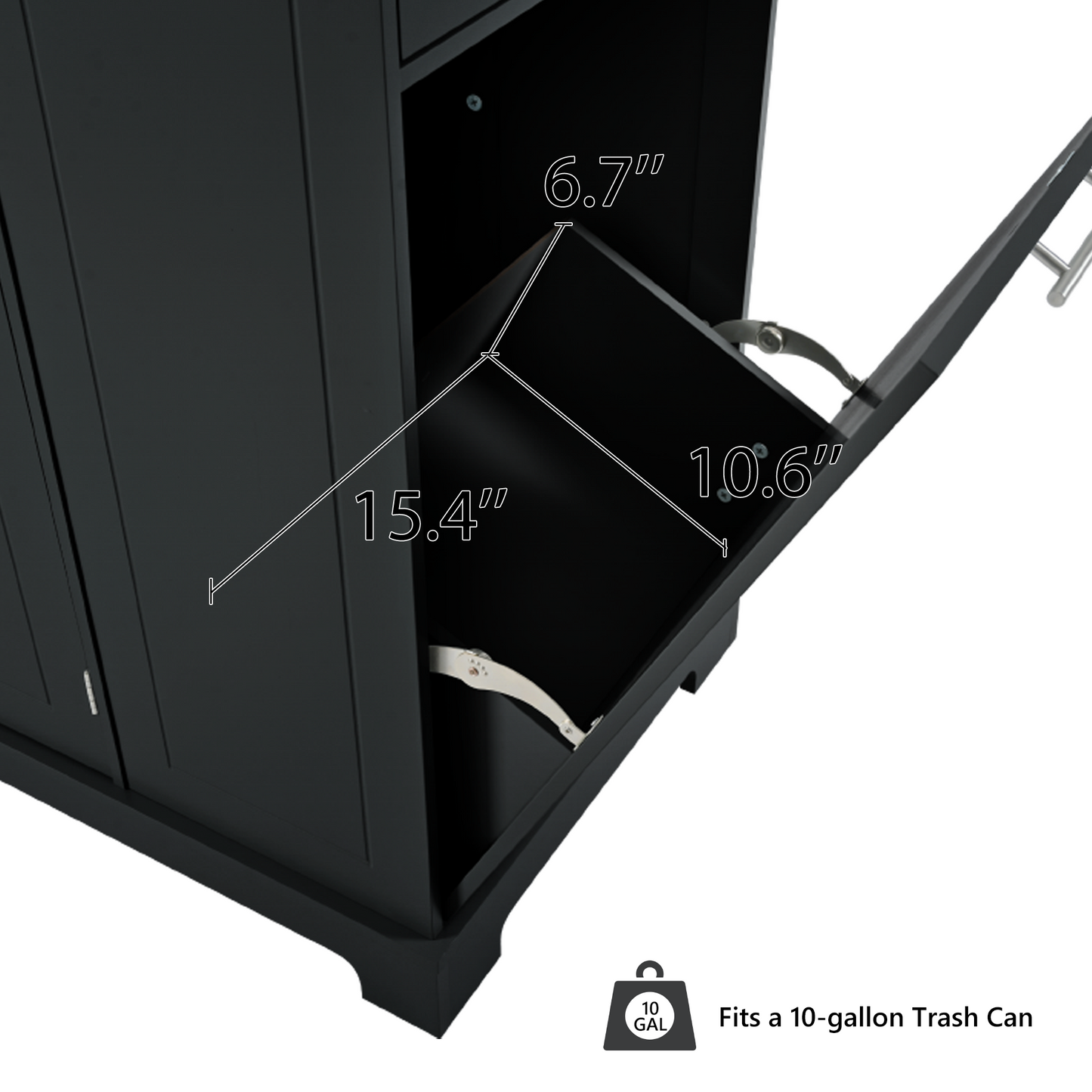 - [Concealed Tilt-out Trash Can] Say farewell to unsightly garbage cans! The garbage bin storage cabinet is a fantastic addition to your kitchen island. It can accommodate a 10-gallon trash can (not included), effectively concealing the trash and keeping the kitchen looking tidy while also preventing pets from knocking over the bins. Additionally, it helps to block any unpleasant odors from escaping.