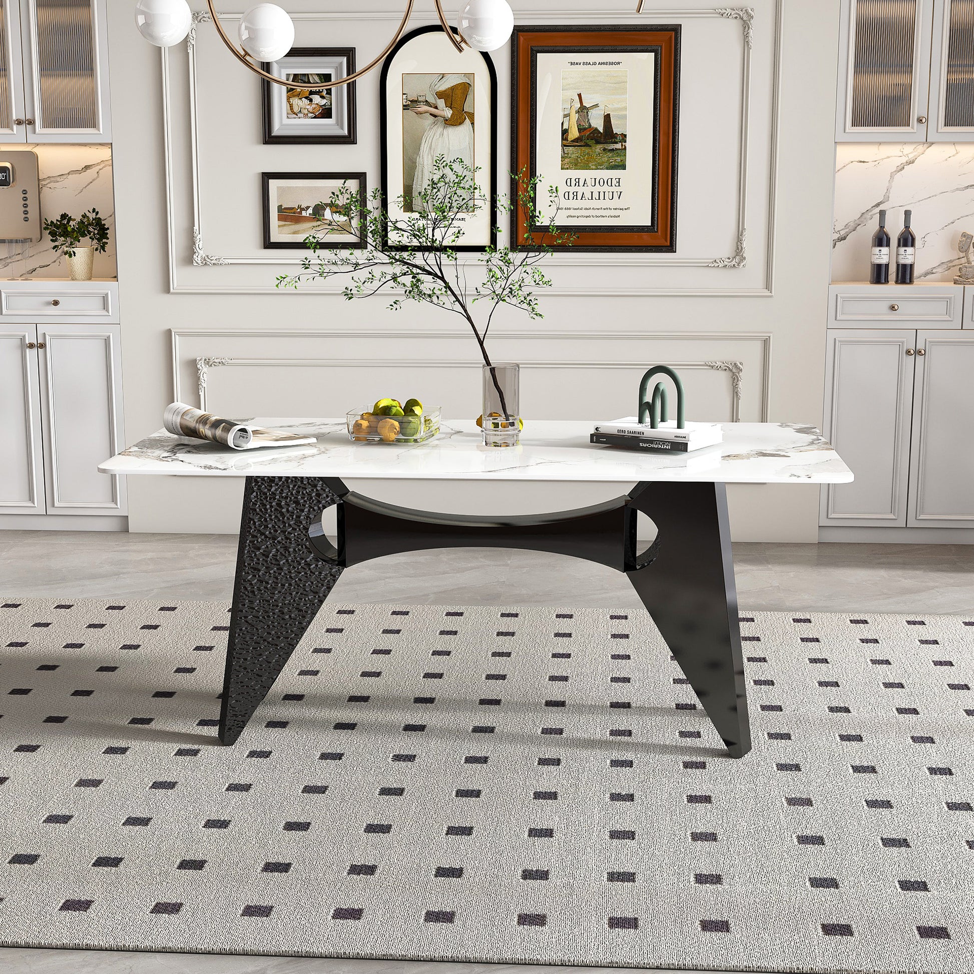- Rectangular dining table: This dining table is 71x35.4 inches in size and 30 inches in height, made of sintered stone and stainless steel base, and is recommended for 4-6 people. The dining table with classic design can be used not only for kitchen dining, but also for living room, dining room, office, café, outdoor and other occasions.
