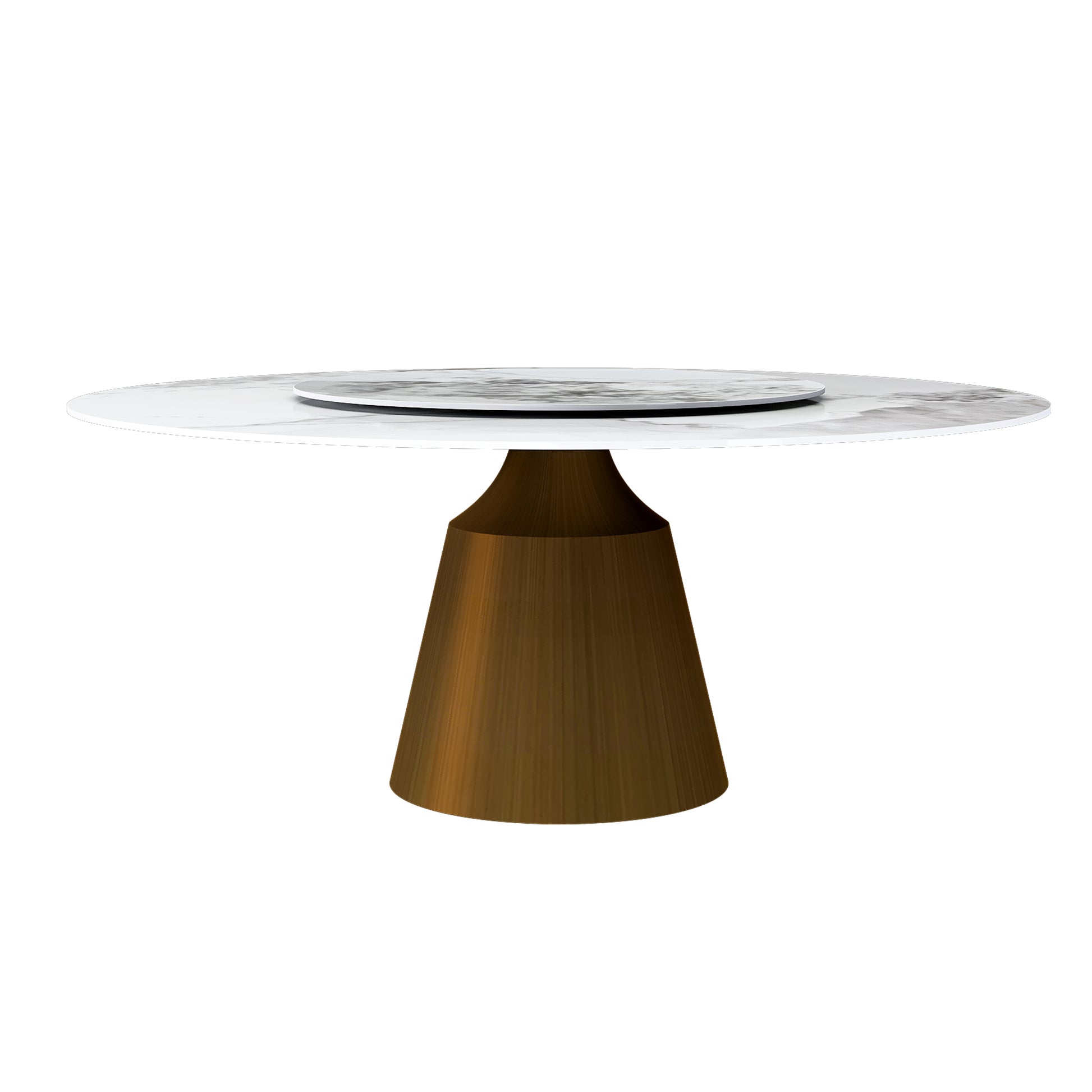 59' Marble Round Dining Table, Sintered Stone Round Dining Table with Stainless Steel Cone Base, Sturdy Dining Table for Kitchen Dining Room for 4-6 people-Bronzed Base