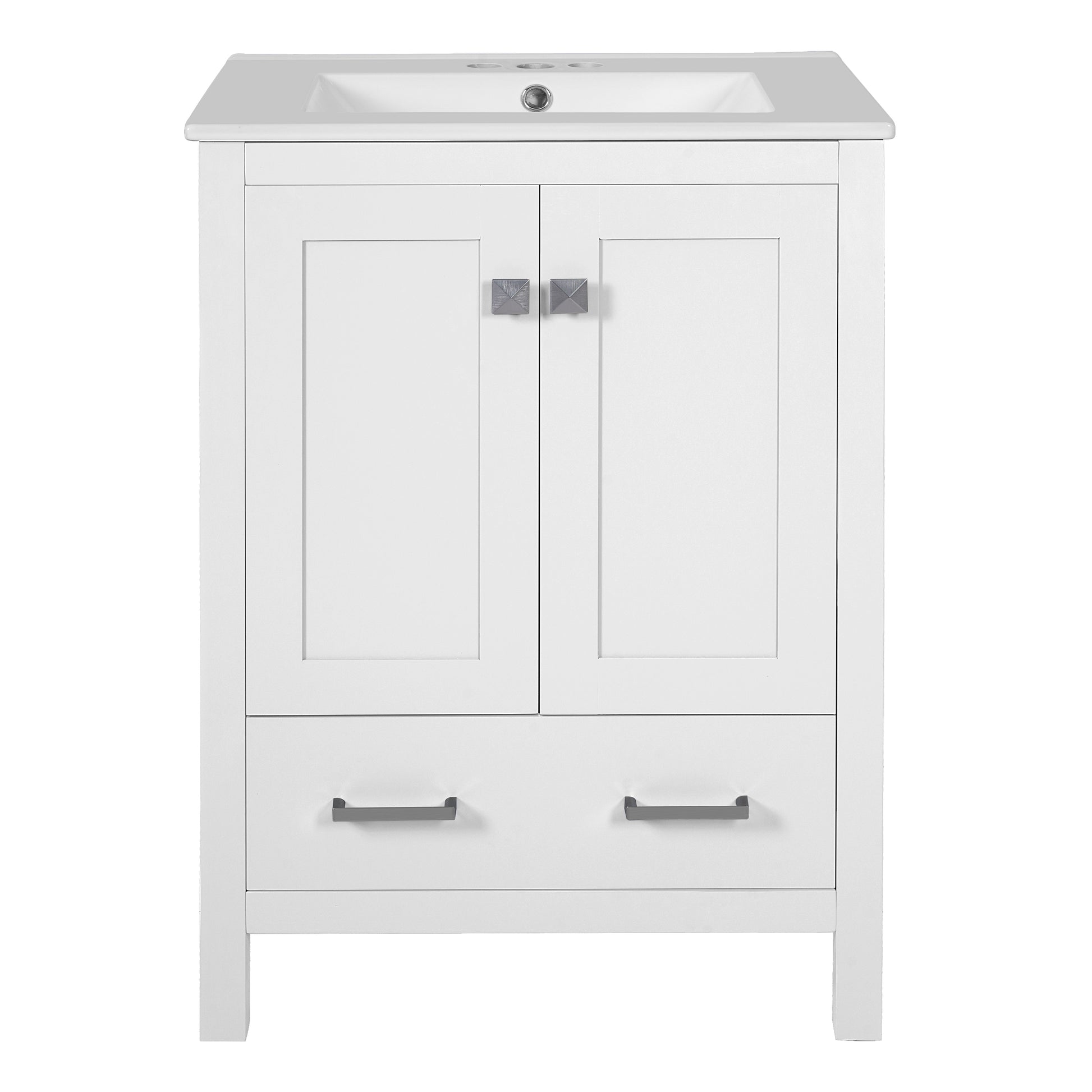 24-inch White Bathroom Vanity with Integrated Undermount Ceramic Sink, Soft-Close Doors, 2 Doors 1 Drawer Storage, Solid Wood Frame, MDF Panels, Painted Finish
