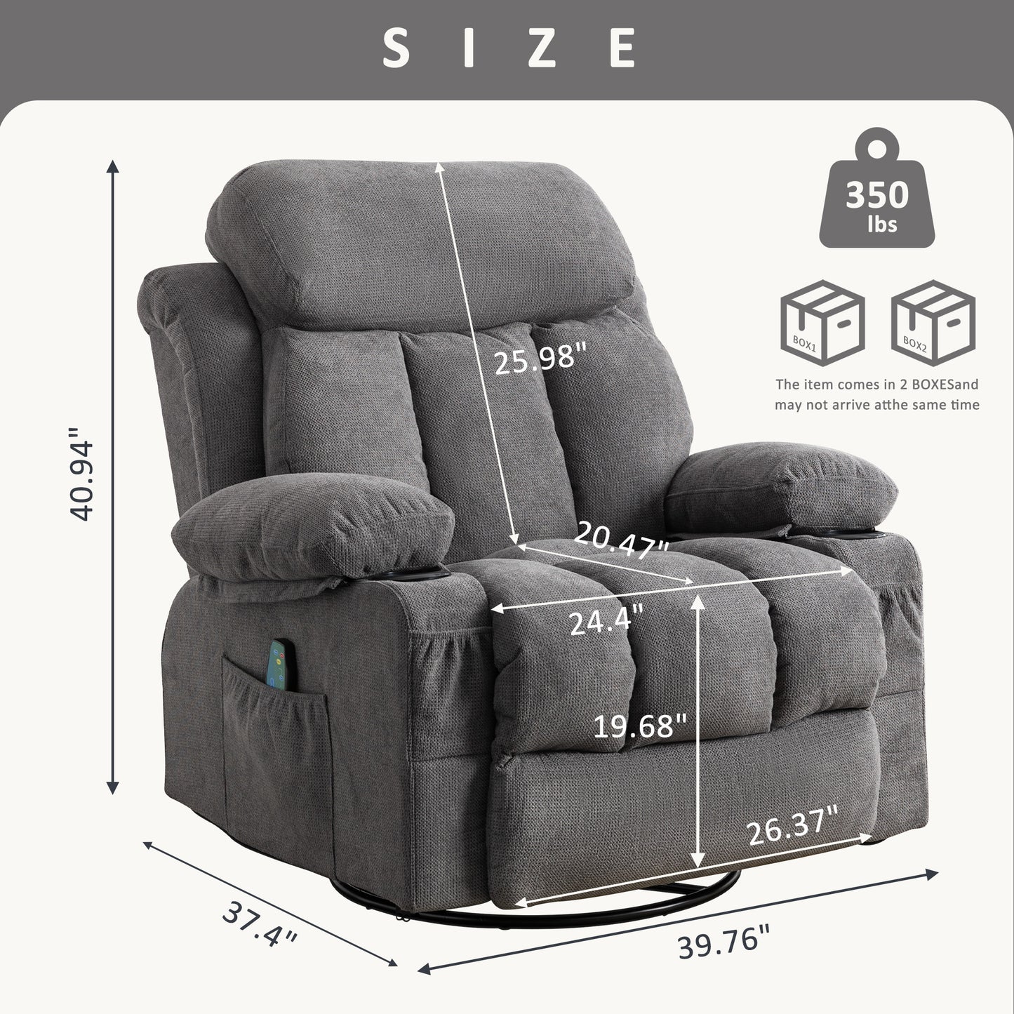 Vanbow.Swinging recliner massage heated sofa, with USB and 2 cup holders in side pockets, PackageA+B (gray fabric )