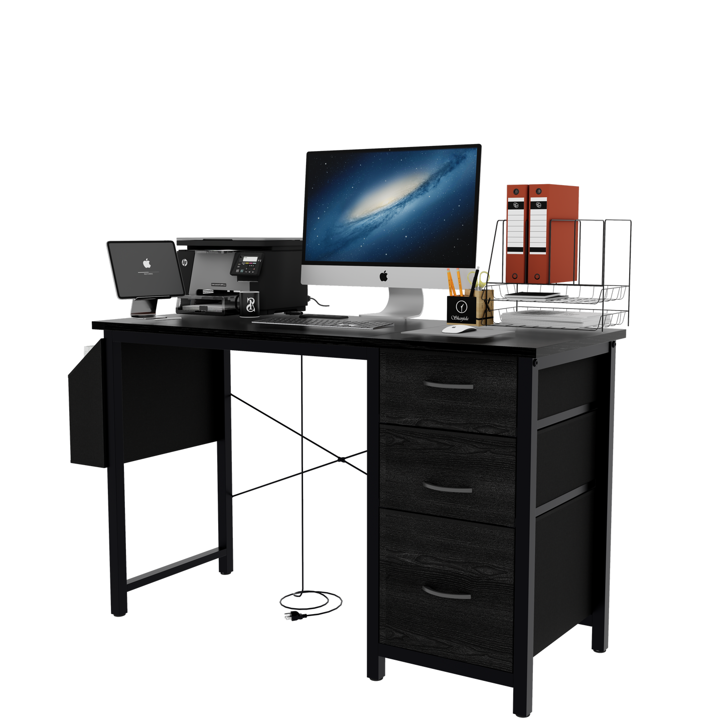 47.3'office desk with power outlet,3 drawers,Large Side Pocket, Desk Easy to Assemble,Frame stability Reversible, for home desk, computer desk, game table,Writing desk,Vanity table, black